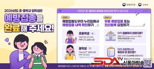 Áúº´°ü¸®Ã»Àº 2026³â ÀÔÇлý º¸È£ÀÚ¸¦ ´ë»óÀ¸·Î ¿¹¹æÁ¢Á¾ ¾È³» ¹®ÀÚ¸¦ ¹ß¼ÛÇÒ ¿¹Á¤À̸ç, °¢ Çб³¿Í º¸°Ç¼Ò¿¡¼µµ ¹ÌÁ¢Á¾ ÀÔÇлý¿¡°Ô Á¢Á¾À» ¾È³»ÇÒ °èȹÀÌ´Ù.