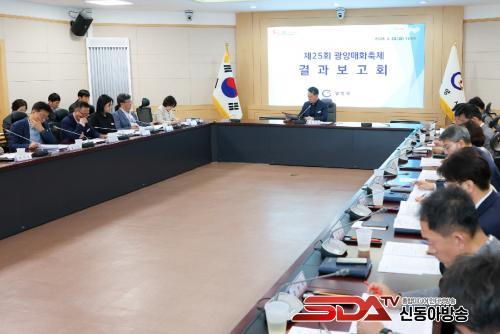 ½Ã´Â 4¿ù 28ÀÏ ½Ãû âÀǽǿ¡¼­ ¡®Á¦25ȸ ±¤¾ç¸ÅÈ­ÃàÁ¦ °á°úº¸°íȸ¡¯¸¦ ¿­°í ÃàÁ¦ ¿î¿µ ¼º°ú¿Í ºÎ¼­º° ÃßÁø °á°ú¸¦ Á¡°ËÇß´Ù. º¸°íȸ´Â ±èÁ¤¿Ï ±¤¾ç½ÃÀå ±ÇÇÑ´ëÇà ÁÖÀç·Î ¿­·ÈÀ¸¸ç, ±¹¡¤¼ÒÀå°ú °ü·Ã ºÎ¼­Àå µî 40¿© ¸íÀÌ Âü¼®ÇØ ÃàÁ¦ °á°ú¸¦ °øÀ¯ÇÏ°í °³¼±»çÇ×À» ³íÀÇÇß´Ù.