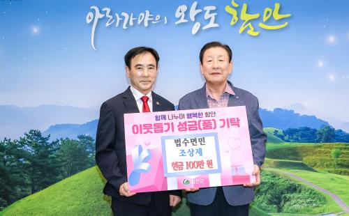 [½Åµ¿¾Æ¹æ¼Û °æ³²ÇÔ¾È=À̽ŵ¿±âÀÚ] ÇԾȱºÀº Áö³­ 24ÀÏ ¹ý¼ö¸é¹Î Á¶»óÁ¦¾¾°¡ ¾î·Á¿î ÀÌ¿ôÀ» À§ÇÑ ÀÌ¿ôµ½±â ¼º±Ý 100¸¸ ¿øÀ» ±âŹÇß´Ù°í ¹àÇû´Ù. À̹ø ±âʽÄÀº ÇԾȱºÃ» ±º¼ö½Ç¿¡¼­ ÁøÇàµÆÀ¸¸ç, ¹ý¼ö¸é¹Î Á¶»óÁ¦¾¾ ¹× °ü°èÀÚµéÀÌ Âü¼®Çß´Ù. ¼º±ÝÀº °øµ¿¸ð±Ýȸ¸¦ Å롦
