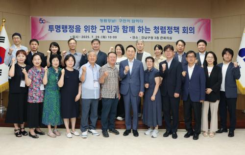 [½Åµ¿¾Æ¹æ¼Û °­³²±¸=À̽ŵ¿±âÀÚ] ²ÞÀÌ ¸ðÀÌ´Â µµ½Ã, ¹Ì·¡¸¦ ±×¸®´Â °­³²±¸°¡ Áö³­ 7¿ù 29ÀÏ ±¸Ã» º»°ü¿¡¼­ ±¸¹Î°¨»ç°üÀ» »õ·Ó°Ô À§ÃËÇϰí, û·ÅÇÑ ÇàÁ¤ ±¸ÇöÀ» À§ÇÑ ¹Î°ü ÇùÄ¡ ±â¹ÝÀ» °­È­Çß´Ù. À̳¯ À§Ã˽İú ÇÔ²² ¿­¸° û·ÅÁ¤Ã¥ ȸÀÇ¿¡¼­´Â ºÎÆÐ Ãë¾à ºÐ¾ß¿¡ ´ëÇÑ Áø´Ü¡¦