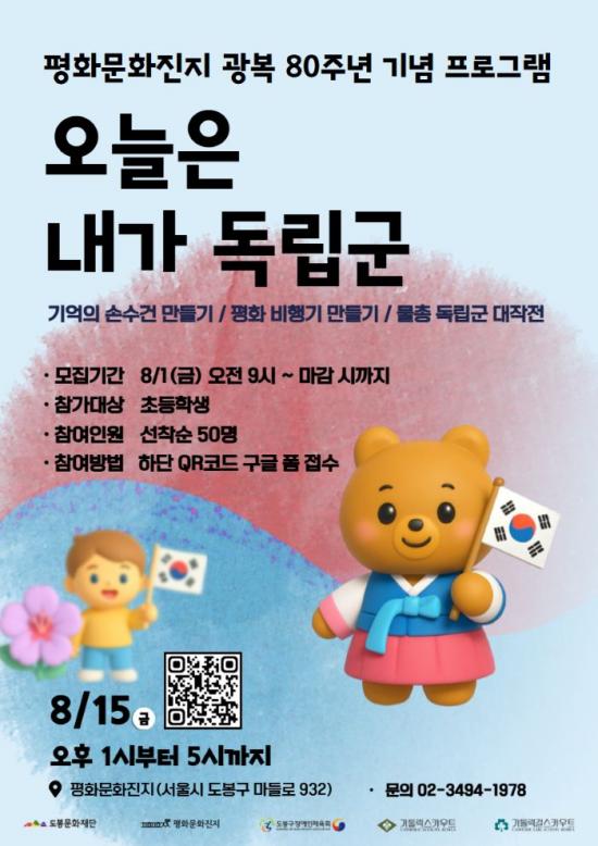 [½Åµ¿¾Æ¹æ¼Û µµºÀ±¸=À̽ŵ¿±âÀÚ] ¼­¿ï µµºÀ±¸ µµºÀ¹®È­Àç´ÜÀÌ ¿À´Â 8¿ù 15ÀÏ ÆòÈ­¹®È­ÁøÁö ¾ß¿Ü µîÁö¿¡¼­ ±¤º¹ 80ÁÖ³âÀ» ¸Â¾Æ ¡®¿À´ÃÀº ³»°¡ µ¶¸³±º¡¯ Çà»ç¸¦ °³ÃÖÇÑ´Ù. À̹ø Çà»ç´Â ÃʵîÇлý ´ë»óÀÇ ¿ª»ç±³À°°ú ³îÀÌ, ¿¹¼úÀ» °áÇÕÇÑ Ã¼ÇèÇü ÇÁ·Î±×·¥À¸·Î ±¸¼ºµÆ´Ù. ¡¦