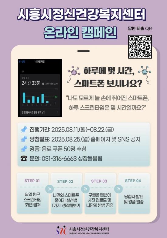 [½Åµ¿¾Æ¹æ¼Û ½ÃÈï½Ã=À̽ŵ¿±âÀÚ] ½ÃÈï½ÃÁ¤½Å°Ç°­º¹Áö¼¾ÅÍ´Â 8¿ù 22ÀϱîÁö ½º¸¶Æ®Æù °úÀÇÁ¸ÀÇ À§Ç輺À» ¾Ë¸®°í, ¿Ã¹Ù¸¥ »ç¿ë ½À°ü È®»êÀ» À§ÇÑ ¿Â¶óÀÎ Ä·ÆäÀÎÀ» ÁøÇàÇÑ´Ù. À̹ø Ä·ÆäÀÎÀº °ü³» û³âÀ» Æ÷ÇÔÇÑ Àü ¿¬·ÉÃþ ´©±¸³ª Âü¿©ÇÒ ¼ö ÀÖÀ¸¸ç, ½º¸¶Æ®Æù »ç¿ë ÆÐÅÏÀ»¡¦