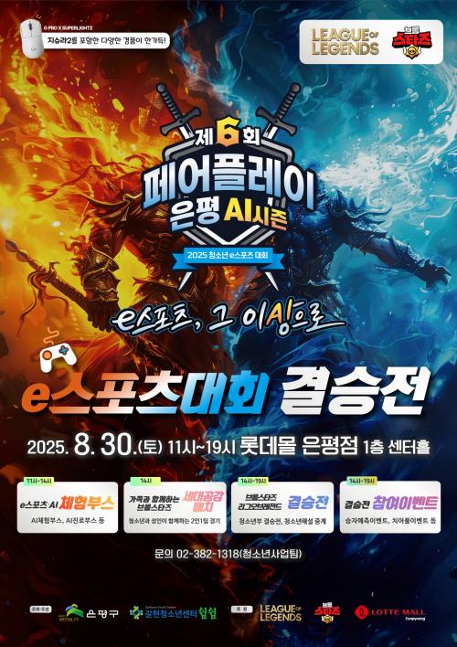 [½Åµ¿¾Æ¹æ¼Û ÀºÆò±¸=À̽ŵ¿±âÀÚ] ¼­¿ï ÀºÆò±¸´Â ¿À´Â 30ÀÏ ·Ôµ¥¸ô ÀºÆòÁ¡¿¡¼­ Á¦6ȸ û¼Ò³â e-½ºÆ÷Ã÷ ´ëȸ ¡®Æä¾îÇ÷¹ÀÌ ÀºÆò-AI½ÃÁ𡯠°á½ÂÀüÀ» °³ÃÖÇÑ´Ù°í ¹àÇû´Ù. ¿ÃÇØ ´ëȸ´Â ºê·Ñ½ºÅ¸Á¸®±×¿Àºê·¹Àüµå °á½ÂÀü, °¡Á·°ú ÇÔ²²ÇÏ´Â ¼¼´ë°ø°¨ ¸ÅÄ¡, AI Áø·Î¡¤ÁøÇÐ ¡¦