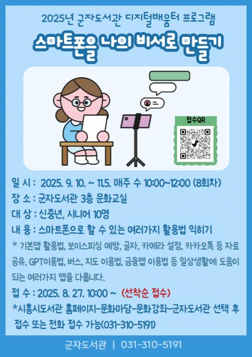 [½Åµ¿¾Æ¹æ¼Û ½ÃÈï½Ã=À̽ŵ¿±âÀÚ] ½ÃÈï½Ã ±ºÀÚµµ¼­°üÀº µðÁöÅРȯ°æ¿¡ Àͼ÷ÇÏÁö ¾ÊÀº ½ÅÁß³â, ¾î¸£½Å ¼¼´ë¸¦ ´ë»óÀ¸·Î ¡®½º¸¶Æ®ÆùÀ» ³ªÀÇ ºñ¼­·Î ¸¸µé±â¡¯ µðÁöÅйè¿òÅÍ ÇÁ·Î±×·¥À» ¿À´Â 9¿ù 10ÀϺÎÅÍ ¿î¿µÇÑ´Ù. À̹ø ÇÁ·Î±×·¥Àº ½Ã¹Î ´©±¸³ª µðÁöÅÐ ÇýÅÃÀ» ´©¸± ¼ö ÀÖ¡¦