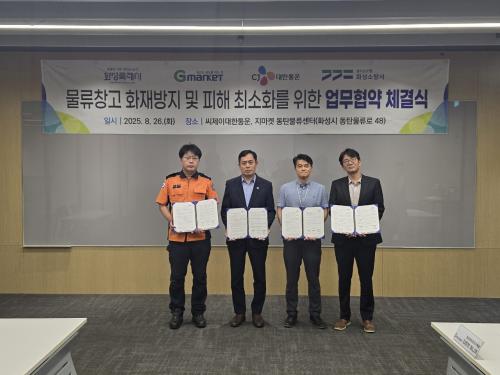 [½Åµ¿¾Æ¹æ¼Û=ÀÌÀçö±âÀÚ] È­¼ºÆ¯·Ê½Ã(½ÃÀå Á¤¸í±Ù)°¡ Áö³­ 26ÀÏ È­¼º¼Ò¹æ¼­, ¾¾Á¦ÀÌ´ëÇÑÅë¿î, Áö¸¶Äϰú ¡®¹°·ùâ°í È­Àç¾ÈÀü°ü¸® °­È­¸¦ À§ÇÑ ¾÷¹«Çù¾à¡¯À» ü°áÇß´Ù. À̳¯ ¾¾Á¦ÀÌ´ëÇÑÅë¿î µ¿Åº¹°·ù¼¾ÅÍ¿¡¼­ ¿­¸° Çù¾à½Ä¿¡´Â ÀÌÀç±¹ È­¼ºÆ¯·Ê½Ã ±³Åë±¹Àå, ±è¿ëµÎ È­¼º¡¦