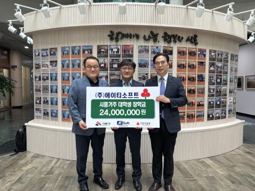 [½Åµ¿¾Æ¹æ¼Û ½ÃÈï½Ã=À̽ŵ¿±âÀÚ] ½ÃÈï½Ã´Â Áö³­ 9¿ù 1ÀÏ ½Ãû º¹Áö±¹Àå½Ç¿¡¼­ ¡®¢ß¿¡ÀÌÆ¼¼ÒÇÁÆ® ¼º±Ý Àü´Þ½Ä¡¯À» ¿­°í, °ü³»¿¡ °ÅÁÖÇÏ´Â ½Ã°¢Àå¾ÖÀÎ ´ëÇлý¿¡°Ô ÃÑ 2,400¸¸ ¿øÀÇ ÀåÇбÝÀ» ÈÄ¿øÇØ ÁØ µ¥¿¡ ´ëÇØ °¨»çÀÇ ¶æÀ» Ç¥Çß´Ù. À̹ø ÈÄ¿øÀº ¢ß¿¡ÀÌÆ¼¼ÒÇÁÆ®°¡ °æ±â¡¦