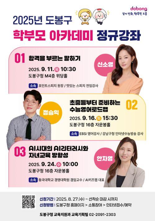 [½Åµ¿¾Æ¹æ¼Û µµºÀ±¸=À̽ŵ¿±âÀÚ] ¼­¿ï µµºÀ±¸°¡ 2Çб⠰³ÇÐÀ» ¸Â¾Æ ÀÚ³à ±³À°¿¡ °í¹Î ¸¹Àº Çкθ𸦠À§ÇØ 9¿ù ÇÑ ´Þ°£ 3¹øÀÇ ÇÐºÎ¸ð ¾ÆÄ«µ¥¹Ì¸¦ ¿¬´Ù. ÇÐºÎ¸ð ¾ÆÄ«µ¥¹Ì´Â ½ºÇÇÄ¡, ¿µ¾î, ÀΰøÁö´É(AI) µî ÀÚ³àÀÇ ÇнÀ ¹× ¹Ì·¡¿ª·®°ú °ü·ÃµÈ ´Ù¾çÇÑ ÁÖÁ¦ÀÇ °­Á·Π±¸¼º¡¦