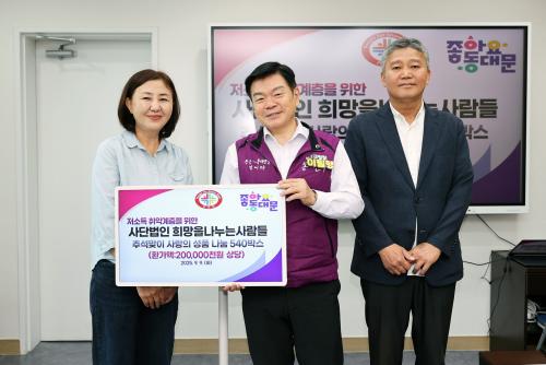 [½Åµ¿¾Æ¹æ¼Û µ¿´ë¹®±¸=À̽ŵ¿±âÀÚ] ¼­¿ï µ¿´ë¹®±¸´Â Áö³­ 9ÀÏ »ç´Ü¹ýÀÎ ¡®Èñ¸ÁÀ»³ª´©´Â»ç¶÷µé¡¯·ÎºÎÅÍ 2¾ï ¿ø »ó´çÀÇ ÈÄ¿ø¹°Ç°À» Àü´Þ¹Þ¾Ò´Ù°í ¹àÇû´Ù. Àü´Þ½Ä¿¡´Â ¿À·£ ±â°£ ¡®Èñ¸ÁÀ»³ª´©´Â»ç¶÷µé¡¯¿¡¼­ ºÀ»çȰµ¿À» À̾î¿Â ÇãÀ±Á¤ ºÀ»çÀÚ¿Í ÈÄ¿ø¹°Ç° Àü´Þ¿¡ ¹°½É¾ç¸é¡¦