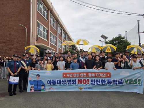 [½Åµ¿¾Æ¹æ¼Û Àü³²¼øÃµ=¹Ú±¤¿Á±âÀÚ] ¼øÃµ°æÂû¼­(¼­Àå ±è´ë¿ø)´Â 9¿ù 18ÀÏ, ³²»êÃʵîÇб³ ¾Õ¿¡¼­¡°¾Æµ¿ ´ë»ó ¹üÁË NO! ¾ÈÀüÇÑ ÅëÇзΠYES!¶ó´Â ½½·Î°Ç ¾Æ·¡ ¾î¸°ÀÌ µî¡¤Çϱ·±æ ¾ÈÀü Ä·ÆäÀÎÀ» ½Ç½ÃÇÏ¿´´Ù. À̹ø Ä·ÆäÀο¡´Â ¼øÃµ°æÂû¼­¸¦ ºñ·ÔÇØ ³²»êÃʵîÇб³, ¼øÃµ ÇС¦