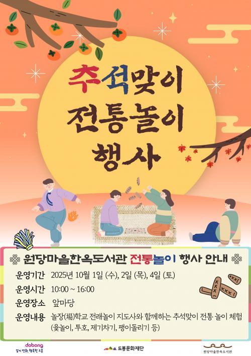 [½Åµ¿¾Æ¹æ¼Û µµºÀ±¸=À̽ŵ¿±âÀÚ] ¼­¿ï µµºÀ±¸ µµºÀ¹®È­Àç´Ü ¿ø´ç¸¶À»ÇÑ¿Áµµ¼­°üÀÌ 10¿ù 1ÀÏ, 2ÀÏ, 4ÀÏ µµ¼­°ü ¾Õ¸¶´ç ¹× Åò¸¶·ç¿¡¼­ ¡®Ãß¼®¸ÂÀÌ ÀüÅë ³îÀÌ Çà»ç¡¯¸¦ °³ÃÖÇÑ´Ù. ¿ø´ç¸¶À»ÇÑ¿Áµµ¼­°üÀº Áö¿ª ³» ÀüÅ빮ȭ Ưȭ µµ¼­°üÀ¸·Î¼­, À̹ø Çà»ç¸¦ ÅëÇØ Áö¿ª ÁֹΡ¦