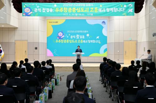 [½Åµ¿¾Æ¹æ¼Û Àü³²°íÈï=¹Ú±¤¿Á±âÀÚ] °íÈﱺ(±º¼ö °ø¿µ¹Î)Àº 29ÀÏ ±ºÃ» ¿ìÁÖȦ¿¡¼­ ½Å±Ô °ø¹«¿ø 53¸íÀ» ´ë»óÀ¸·Î ÀÓ¿ëÀå ¼ö¿©½ÄÀ» °³ÃÖÇß´Ù°í ¹àÇû´Ù. À̹ø ÀÓ¿ë½ÄÀº »õ³»±â °ø¹«¿øÀÇ ¡®°øÁ÷ ù°ÉÀ½¡¯À» ÃàÇÏÇÏ°í »õ·Î¿î Ãâ¹ßÀ» ÀÀ¿øÇϱâ À§ÇØ ¸¶·ÃµÈ ÀÚ¸®·Î, °íÈﱺÀº¡¦
