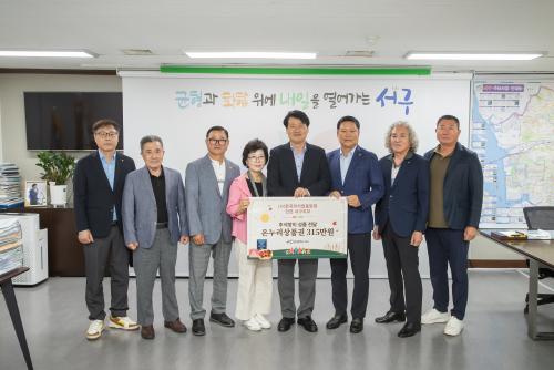[½Åµ¿¾Æ¹æ¼Û ÀÎõ=À±¹Î½Ä±âÀÚ] ÀÎõ ¼­±¸(±¸Ã»Àå °­¹ü¼®)´Â 9¿ù 29ÀÏ, (»ç)Çѱ¹¿Ü½Ä¾÷Áß¾Óȸ ÀÎõ ¼­±¸ÁöºÎ(ÁöºÎÀå ±èÀç¼®)°¡ Ãß¼® ¸íÀýÀ» ¸Â¾Æ ¾î·Á¿î ÀÌ¿ôµéÀ» À§ÇØ 315¸¸ ¿ø »ó´çÀÇ ¿Â´©¸®»óǰ±ÇÀ» ±âºÎÇß´Ù°í ¹àÇû´Ù. À̹ø ±âºÎ½ÄÀº ¼­±¸Ã» ±¸Ã»Àå½Ç¿¡¼­ ÁøÇàµÇ¡¦