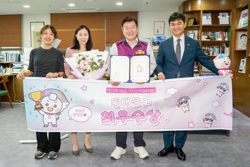 [½Åµ¿¾Æ¹æ¼Û µ¿´ë¹®±¸=À̽ŵ¿±âÀÚ] ¼­¿ï µ¿´ë¹®±¸°¡ ¡®2025 ´ëÇѹα¹ SNS ´ë»ó¡¯¿¡¼­ ÀÚÄ¡±¸ ºÎ¹® ÃÖ¿ì¼ö»óÀ» ¼ö»óÇÏ¸ç ¿Â¶óÀÎ ÇàÁ¤ ¼ÒÅë ºÐ¾ß¿¡¼­ ¿ì¼öÇÑ ¿ª·®À» ÀÎÁ¤¹Þ¾Ò´Ù. ¡®´ëÇѹα¹ SNS ´ë»ó¡¯Àº °ø°ø±â°ü°ú ±â¾÷ÀÇ SNS Ȱ¿ëµµ¸¦ Æò°¡ÇØ ¿ì¼ö »ç·Ê¸¦ ¼±Á¤ÇÏ´Â ¡¦