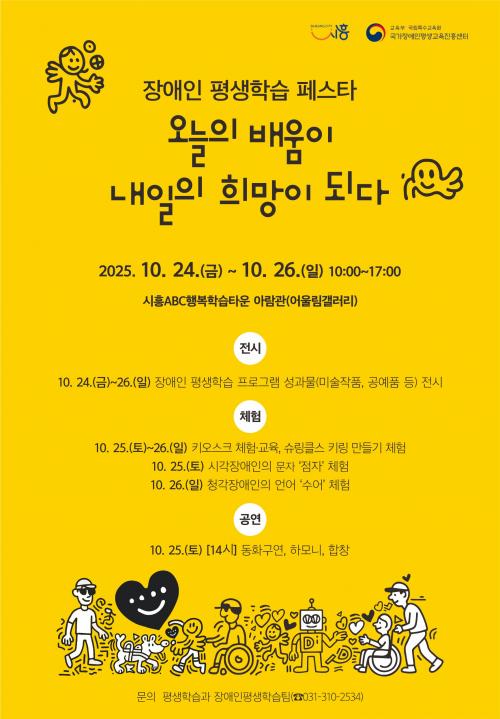 [½Åµ¿¾Æ¹æ¼Û ½ÃÈï½Ã=À̽ŵ¿±âÀÚ] ½ÃÈï½Ã´Â ¿À´Â 10¿ù 24ÀϺÎÅÍ 26ÀϱîÁö 3Àϰ£, ½ÃÈïABCÇູÇнÀŸ¿î ¾Æ¶÷°ü°ú ¾î¿ïÅÍ ÀÏ¿ø¿¡¼­ ¡®2025 Àå¾ÖÀÎ Æò»ýÇнÀ Æä½ºÅ¸¡¯¸¦ °³ÃÖÇÑ´Ù. À̹ø Çà»ç´Â ¡®Á¦17ȸ ½ÃÈï½Ã Æò»ýÇнÀÃàÁ¦¡¯¿Í ¿¬°èÇØ ¿­¸®¸ç, ¡°¿À´ÃÀÇ ¹è¿òÀÌ ³»ÀÏÀÇ ¡¦