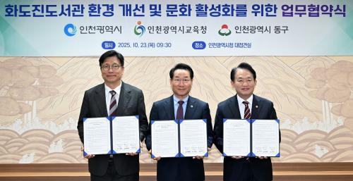 [½Åµ¿¾Æ¹æ¼Û ÀÎõ=À±¹Î½Ä±âÀÚ]ÀÎõ±¤¿ª½Ã(½ÃÀå À¯Á¤º¹)´Â ÀÎõ±¤¿ª½Ã±³À°Ã»(±³À°°¨ µµ¼ºÈÆ), ÀÎõ±¤¿ª½Ã µ¿±¸(±¸Ã»Àå ±èÂùÁø)¿Í ÇÔ²² 10¿ù 23ÀÏ ÀÎõ½Ãû¿¡¼­ ¡®È­µµÁøµµ¼­°ü Áõ¡¤°³Ãà ÃßÁøÀ» À§ÇÑ ¾÷¹«Çù¾à¡¯À» ü°áÇß´Ù°í ¹àÇû´Ù. À̹ø Çù¾à¿¡ µû¶ó ÀÎõ½Ã¿Í µ¿±¸¡¦