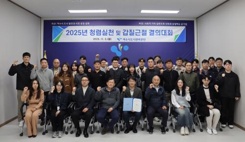 [½Åµ¿¾Æ¹æ¼Û ¿©¼ö=±è±â³² ±âÀÚ] ¿©¼ö½Ãµµ½Ã°ü¸®°ø´Ü(ÀÌ»çÀå ¼Ûº´±¸)Àº 11¿ù 3ÀÏ º»»ç ȸÀǽǿ¡¼­ ¡®Ã»·Å½Çõ ¹× °©Áú±ÙÀý °áÀÇ´ëȸ¡¯¸¦ °³ÃÖÇß´Ù°í ¹àÇû´Ù. À̹ø °áÀÇ´ëȸ´Â °øÁ÷»çȸÀÇ Ã»·ÅÀǽÄÀ» °­È­Çϰí, °ÇÀüÇÑ Á¶Á÷¹®È­¸¦ È®¸³Çϱâ À§ÇØ ¸¶·ÃµÆ´Ù. À̳¯ Çà»ç¿¡¡¦