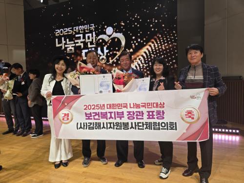 [½Åµ¿¾Æ¹æ¼Û °æ³²±èÇØ=³²±Ã¿µ±â±âÀÚ] ±èÇØ½Ã´Â ¡®2025³â ´ëÇѹα¹ ³ª´®±¹¹Î´ë»ó¡¯¿¡¼­ (»ç)±èÇØ½ÃÀÚ¿øºÀ»ç´ÜüÇùÀÇȸ¿Í ÀÚ¿øºÀ»ç»çÀÚ 2¸íÀÌ º¸°Çº¹ÁöºÎÀå°ü ǥâÀ» ¼ö»óÇß´Ù°í 7ÀÏ ¹àÇû´Ù. ´ëÇѹα¹ ³ª´®±¹¹Î´ë»óÀº º¸°Çº¹ÁöºÎ, KBS, »çȸº¹Áö°øµ¿¸ð±Ýȸ°¡ °øµ¿ ÁÖ¡¦