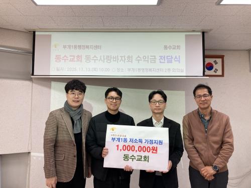 ºÎ°³1µ¿, µ¿¼ö±³È¸·ÎºÎÅÍ ¹ÙÀÚȸ ¼öÀÍ±Ý 100¸¸¿ø ±âŹ ¹Þ¾Æ