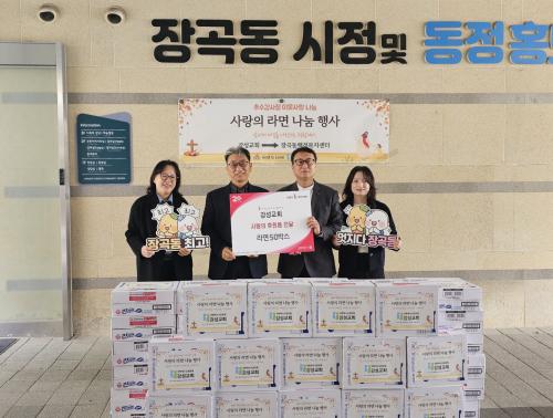 [½Åµ¿¾Æ¹æ¼Û ½ÃÈï½Ã=À̽ŵ¿±âÀÚ] ½ÃÈï½Ã Àå°îµ¿ ÇàÁ¤º¹Áö¼¾ÅÍ¿¡ Áö³­ 11¿ù 17ÀÏ °­¼º±³È¸°¡ ¹æ¹®ÇØ Ãë¾à°èÃþÀ» À§ÇÑ ¶ó¸é 50»óÀÚ¸¦ Àü´ÞÇß´Ù. ´ëÇÑ¿¹¼ö±³ Àå·Îȸ ¼Ò¼Ó °­¼º±³È¸´Â ±âµ¶±³¿¬ÇÕȸ¸¦ ÅëÇØ ½ÃÈï½Ã¿¡ ²ÙÁØÈ÷ ÈÄ¿ø Ȱµ¿À» ÇØ¿ÔÀ¸¸ç À̹ø Ãß¼ö°¨»çÀýÀ» ¸ÂÀÌ¡¦