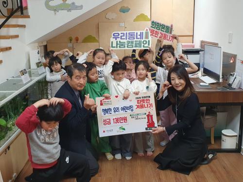 [½Åµ¿¾Æ¹æ¼Û ÀºÆò±¸=À̽ŵ¿±âÀÚ] ¼­¿ï ÀºÆò±¸ ÀÀ¾Ï2µ¿Àº Áö³­ 1ÀÏ ±¸¸³ ÇູÇѿ츮¾î¸°ÀÌÁý¿¡¼­ ¾î·Á¿î ÀÌ¿ôµéÀÇ µû¶æÇÑ °Ü¿ï³ª±â¸¦ À§ÇÑ ¼º±Ý 1¹é36¸¸ ¿øÀ» Àü´ÞÇß´Ù°í ¹àÇû´Ù. À̹ø ¼º±ÝÀº Áö³­ 6¿ù ÇູÇѿ츮¾î¸°ÀÌÁý¿¡¼­ º­·è½ÃÀåÀ» ÅëÇØ ¸¶·ÃÇÑ ¼öÀͱÝÀ¸·Î ¾î¸°¡¦