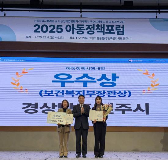 [½Åµ¿¾Æ¹æ¼Û °æ³²ÁøÁÖ=±è¸í¼ö±âÀÚ] ÁøÁֽô 8ÀÏ °­¿øµµ ¿øÁֽà ¿ÀÅ©¹ë¸® ¸®Á¶Æ®¿¡¼­ ¿­¸° ¡®Á¦13ȸ ¾Æµ¿Á¤Ã¥Æ÷·³¡¯¿¡¼­ 2024³â ¾Æµ¿Á¤Ã¥ ½ÃÇà°èȹ ÃßÁø½ÇÀû Æò°¡¿¡¼­ ¡®¿ì¼ö¡¯ ÁöÀÚü·Î ¼±Á¤µÅ º¸°Çº¹ÁöºÎ Àå°ü»óÀ» ¼ö»óÇß´Ù. º¸°Çº¹ÁöºÎ´Â Àü±¹ ÁöÀÚü¸¦ ´ë»óÀ¸·Î ¡¦
