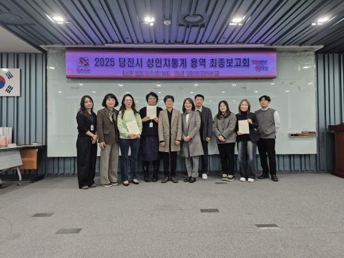[½Åµ¿¾Æ¹æ¼Û=ÀÌÀçö±âÀÚ] ´çÁø½Ã´Â Áö³­ 5ÀÏ ÁßȸÀǽǿ¡¼­ ¡®´çÁø½Ã ¼ºÀÎÁö Åë°è ¿ë¿ª ÃÖÁ¾ º¸°íȸ¡¯¸¦ °³ÃÖÇÏ°í ´çÁø½Ã ¼ºÆòµî Á¤Ã¥ÀÇ ±âÃÊÀÚ·á·Î Ȱ¿ëµÉ ¼ºÀÎÁö Åë°è ±¸Ãà °á°ú¸¦ ¹ßÇ¥Çß´Ù. À̹ø ¿¬±¸´Â Ãæ³²»çȸ¼­ºñ½º¿øÀÌ ¼öÇàÇØ ´çÁø½ÃÀÇ Àα¸¡¤»çȸ¡¤°æÁ¦ Àü¹Ý¡¦