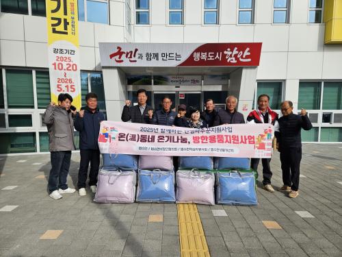 [½Åµ¿¾Æ¹æ¼Û °æ³²ÇÔ¾È=À̽ŵ¿±âÀÚ] ÇԾȱº ¹ý¼ö¸éÀº ÇÔ²²ÇÏ´Â ¾È½ÉÆÄ¼ö²Û »ç¾÷ÀÇ ÀÏȯÀ¸·Î µ¶°Å³ëÀο¡°Ô ¹æÇÑ¿ëǰÀ» Áö¿øÇÏ´Â ¡®¿Â(è®)µ¿³× ¿Â±â³ª´®, ¹æÇÑ¿ëǰ Áö¿ø»ç¾÷¡¯À» ½Ç½ÃÇß´Ù°í 23ÀÏ ¹àÇû´Ù. À̹ø »ç¾÷Àº µ¿Àý±â¸¦ ¸Â¾Æ µ¶°Å³ëÀÎÀÇ µû¶æÇÑ »ýȰÀ» µ½±â À§ÇØ¡¦