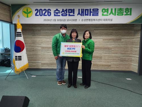 [½Åµ¿¾Æ¹æ¼Û=ÀÌÀçö±âÀÚ] ´çÁø½Ã´Â Áö³­ 30ÀÏ ¼ø¼º¸é »õ¸¶À»ÁöµµÀÚÇùÀÇȸ¡¤ºÎ³àȸ(ÇùÀÇȸÀå ¼ºÁÖÇö, ºÎ³àȸÀå ¼ÛÁöÈñ)°¡ ¼ø¼º¸é ÇàÁ¤º¹Áö¼¾ÅÍ(¸éÀå ±¸º»ÈÖ)¸¦ ¹æ¹®ÇØ ºÒ¿ìÀÌ¿ôµ½±â ¼º±Ý 100¸¸ ¿øÀ» ±âŹÇß´Ù°í 3ÀÏ ¹àÇû´Ù. ±âŹÇÑ ¼º±ÝÀº °æÁ¦Àû ¾î·Á¿òÀ» °Þ°í Àִ¡¦