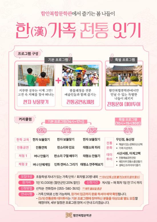[½Åµ¿¾Æ¹æ¼Û °æ³²ÇÔ¾È=À̽ŵ¿±âÀÚ] ÇԾȱºÀº 3¿ù 28ÀϺÎÅÍ 5¿ù 9ÀϱîÁö ÇԾȺ¹ÇÕ¹®Çаü¿¡¼­ ÃʵîÇлý Àڳฦ µÐ °¡Á·À» ´ë»óÀ¸·Î ¿ì¸® ÀüÅ빮ȭÀÇ °¡Ä¡¸¦ Á÷Á¢ üÇèÇÏ°í ¹è¿ì´Â ¡®ÇÑ(ùÓ)°¡Á· ÀüÅë Àձ⡯ ÇÁ·Î±×·¥À» ¿î¿µÇÑ´Ù°í 13ÀÏ ¹àÇû´Ù. À̹ø ÇÁ·Î±×·¥Àº °ÝÁÖ ¡¦
