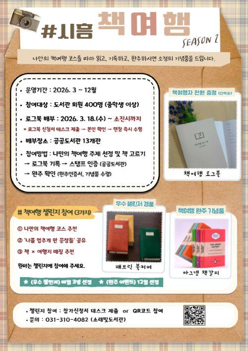 ½ÃÈï½Ãµµ¼­°ü, ¡®2026 ½ÃÈï Ã¥¿©Çà(½ÃÁð2)¡¯ ·Î±×ºÏ 3¿ù 18ÀϺÎÅÍ ¼±Âø¼ø ¹èºÎ¡¦ µ¶¼­ 縰Áö ÇÔ²² ¿î¿µ