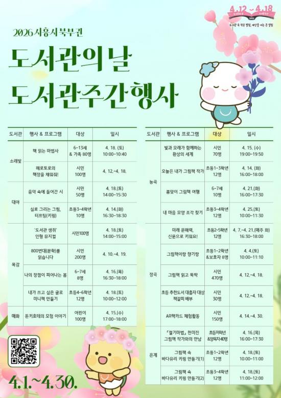 ¡®4¿ù µµ¼­°üÀ¸·Î Ã¥³ªµéÀÌ °¡ÀÚ¡¯, ½ÃÈï½Ã ºÏºÎ±Ç µµ¼­°üÁÖ°£ ¸Â¾Æ µ¶¼­¹®È­ Çà»ç dz¼º