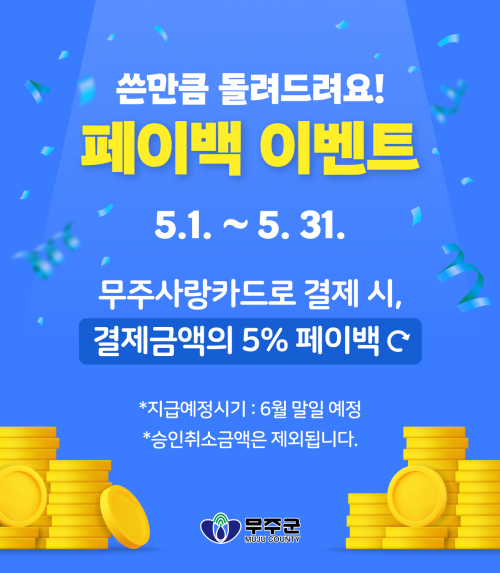 ¹«ÁÖ±º¿¡ µû¸£¸é Áö³ÇØ 5¿ù ¹«ÁÖ»ç¶û»óǰ±Ç ÆäÀ̹é À̺¥Æ® »ç¿ë½ÇÀûÀº 6,346°ÇÀ¸·Î 1¾ï 3õ 6¹é¿©¸¸ ¿øÀÌ Àμ¾Æ¼ºê·Î Áö±ÞµÇ´Â µî Ä«µå¡¤¸ð¹ÙÀÏÇü »óǰ±ÇÀÇ »ç¿ë ÃËÁø ¹× °ÇÀüÇÑ »óǰ±Ç À¯Åë¿¡ ±â¿©Çß´Ù.