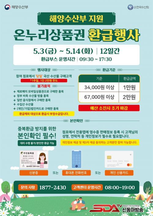 À̹ø Çà»ç´Â 3ÀϺÎÅÍ 9ÀÏ, 10ÀϺÎÅÍ 14ÀϱîÁö ÀÏÁÖÀϾ¿ µÎ Â÷·Ê¿¡ °ÉÃÄ ÁøÇàµÈ´Ù. °áÁ¦±Ý¾× 3¸¸ 4õ ¿ø ÀÌ»ó ±¸¸Å ½Ã 1¸¸ ¿ø, 6¸¸ 7õ ¿ø ÀÌ»ó ±¸¸Å ½Ã 2¸¸ ¿øÀ» ȯ±Þ¹Þ´Â´Ù. ´çÀÏ ¿µ¼öÁõ¿¡ ÇÑÇØ¼ ÇÕ»êÀº °¡´ÉÇÏÁö¸¸, ÇÑ Ç°¸ñ¿¡ ´ëÇÑ ¿µ¼öÁõ ºÐÇÒÀº ºÒ°¡´ÉÇÏ´Ù.