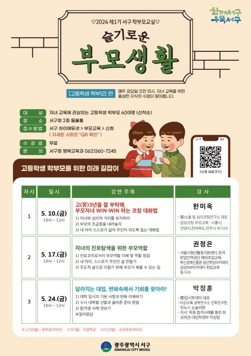 ƯÈ÷ 5¿ù 10ÀϺÎÅÍ ¸ÅÁÖ ±Ý¿äÀÏ ¿ÀÀü 10½Ã ¼­±¸Ã» µéºÒȦ¿¡¼­ ÁøÇàµÇ´Â¡®Á¦1±â °íµîÇлý Çкθ𸦠À§ÇÑ ¹Ì·¡ ±æÀâÀÌ¡¯¿¡¼­´Â °¢ ºÐ¾ßÀÇ Àü¹®°¡µéÀÌ ¡ã°í(ÍÈ)3³âÀ» Àß ºÎÅ¹ÇØ, ºÎ¸ðÀÚ³à win-winÇÏ´Â ÄÚĪ ´ëÈ­¹ý ¡ãÀÚ³àÀÇ Áø·Î Ž»öÀ» À§ÇÑ ºÎ¸ð ¿ªÇÒ ¡ã´Þ¶óÁö´Â ´ëÀÔ, º¯È­ ¼Ó¿¡¼­ ±âȸ¸¦ ã¾Æ¶ó! ¶ó´Â ÁÖÁ¦·Î °íµîÀڳฦ µÐ Çкθðµé¿¡°Ô ½ÉÃþ °­ÀǸ¦ Á¦°øÇÒ °èȹÀÌ´Ù.