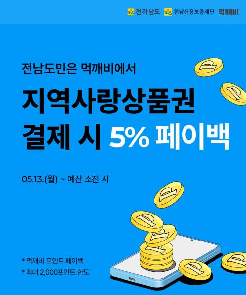 ÆäÀ̹é À̺¥Æ®´Â ¸Ô±úºñ¿¡¼ Áö¿ª»ç¶û»óǰ±ÇÀ¸·Î ÁÖ¹®À» ¿Ï·áÇÑ °í°´¿¡°Ô ÃÖ´ë 5%(2õ ¿ø Çѵµ) ¸Ô±úºñ Æ÷ÀÎÆ®¸¦ ÆäÀ̹éÀ¸·Î ¼±Âø¼ø Áö±ÞÇÏ´Â À̺¥Æ®´Ù.