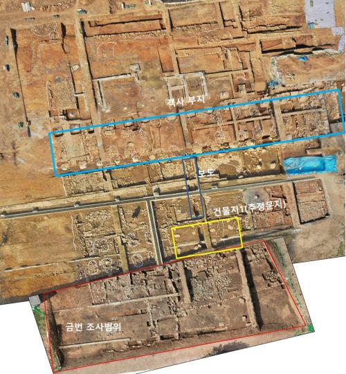 Á¶»ç °á°ú, 2020³â Á¶»çµÈ °´»ç ºÎÁö ³» 1È£ °Ç¹°Áö(³»»ï¹®Áö)ÀÇ Ãʼ®°ú ±â´Ü, °è´Ü½Ã¼³ÀÇ ¿¬°á¼ºÀ» È®ÀÎÇßÀ¸¸ç, °Ç¹°ÁöÀÇ ±Ô¸ð´Â ´Ù¸¥ ³»»ï¹®Áö¿¡¼´Â º¸±â µå¹® ÀüÈÄ Åò°£ÀÌ ¼³°èµÈ Á¤¸é 3Ä, Ãø¸é 3ÄÀÇ ±¸Á¶¸¦ °®°í ÀÖ´Ù.