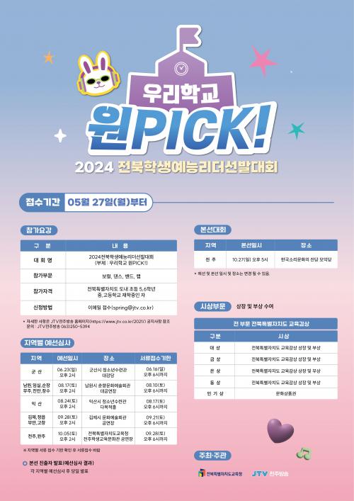 ÀüºÏ±³À°Ã»Àº Çб³ ¹Û¿¡¼ ÀÌ·ç¾îÁö°í ÀÖ´Â °æ¿¬¿Àµð¼Ç ÇÁ·Î±×·¥À» Çб³ ¾È¿¡¼ °øÀ¯ÇÏ°í °æÇèÇÒ ¼ö ÀÖµµ·Ï ÇØ Çб³¹®È ¿¹¼ú±³À° ÃàÁ¦ÀÇ ÀåÀ» Çü¼ºÇϰí, ¿¹´É¿¡ °ü½É°ú Àç´ÉÀÌ ÀÖ´Â ÇлýµéÀÌ ÀáÀç·ÂÀ» ¹ßÇöÇÒ ¼ö ÀÖµµ·Ï Áö³ÇغÎÅÍ ¿¹´É¸®´õ ¼±¹ß´ëȸ¸¦ °³ÃÖÇϰí ÀÖ´Ù.