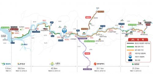 [½Åµ¿¾Æ¹æ¼Û=À̺´½Ä±âÀÚ] Àü¶ó³²µµ°¡ ´ã¾ç´ï¿¡¼­ ¿µ»ê°­ Çϱ¸µÏ±îÁö 122.5km¿¡ À̸£´Â ÀÚÀü°Å±æÀ» ¡®¿µ»ê°­ ¹°ºû ÀÚÀü°Å±æ¡¯·Î »õ·Ó°Ô ¸í¸íÇϰí, ¾ÈÀüÇÑ ÀÌ¿ëȯ°æ Á¦°øÀ» À§ÇÑ ÁßÀå±â Á¤ºñ°èȹ°ú Ȱ¿ë ºñÀüÀ» ¼±Æ÷Çϱâ·Î Çß´Ù.
