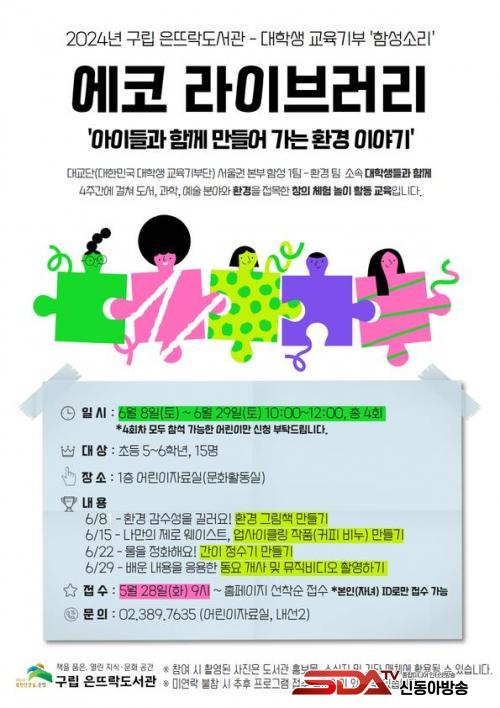 Àº¶ß¶ôµµ¼­°ü¿¡¼­´Â ´ëÇѹα¹ ´ëÇлý ±³À°±âºÎ´Ü ¼­¿ï±Çº»ºÎ ÇÔ¼º 1ÆÀ-ȯ°æÆÀ µ¿¾Æ¸®¿Í ÇÔ²² ȯ°æ ÁÖÁ¦ÀÇ Ã¢ÀÇ Ã¼Çè ³îÀÌ È°µ¿ÀÎ ¡®¿¡ÄÚ ¶óÀ̺귯¸®-¾ÆÀ̵é°ú ÇÔ²² ¸¸µé¾î °¡´Â ȯ°æ À̾߱⡯ ÇÁ·Î±×·¥À» ¿î¿µÇÑ´Ù.