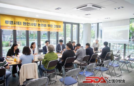 À̹ø °£´ãȸ´Â ·ç¿ø½ÃƼ 6°³ ¾ÆÆÄÆ® ÀÔÁÖÀÚ´ëǥȸÀÇ È¸ÀåÀ¸·Î ±¸¼ºµÈ ·ç¿ø½ÃƼ ÀÔÁֹΠÇùÀÇȸ °ü°èÀÚ µî Áö¿ªÁֹεéÀ» ¸¸³ª ·ç¿ø½ÃƼ µµ½Ã°³¹ß»ç¾÷ °ü·Ã ÁÖ¹ÎÀǰßÀ» ¼ö·ÅÇϰí ÁÖ¿ä Çö¾È »çÇ׿¡ ´ëÇÑ ÇØ°á¹æ¾ÈÀ» ³íÀÇÇϱâ À§ÇØ ¸¶·ÃµÆ´Ù.