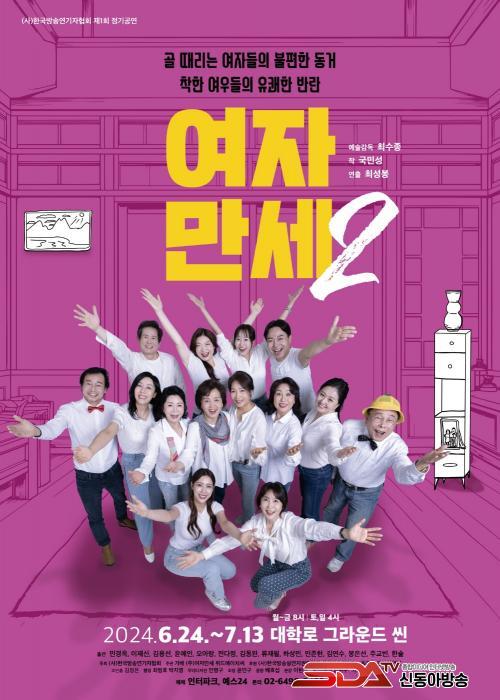 ÇÑÆí, ¿¬±Ø <¿©ÀÚ¸¸¼¼2>´Â 2024³â 6¿ù 24ÀÏ(¿ù)ºÎÅÍ 7¿ù 13ÀÏ(Åä)±îÁö ´ëÇзΠ±×¶ó¿îµå¾À¿¡¼­ °ø¿¬µÈ´Ù. 5¿ù 31ÀÏ(±Ý)ºÎÅÍ ÀÎÅÍÆÄÅ© ƼÄÏÀ» ÅëÇØ ¿¹¸Å °¡´ÉÇϸç, 10»ì ÀÌ»ó ³ªÀÌ Â÷À̰¡ ³ª´Â 3ÀÎ °ü¶÷°´À» À§ÇÑ 3´ëÇÒÀÎ, ¿©¼º³¢¸® °ü¶÷ ½Ã Àû¿ë °¡´ÉÇÑ ¿©ÀÚ³¢¸® ÇÒÀÎ µî ´Ù¾çÇÑ ÇÒÀÎÇýÅÃÀÌ Á¦°øµÈ´Ù.