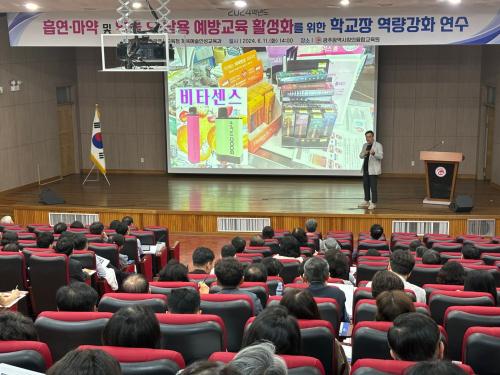 12ÀÏ ½Ã±³À°Ã»¿¡ µû¸£¸é À̹ø ¿¬¼ö´Â ¡®It's our golden time! û¼Ò³â ½ÅÁ¾ ´ã¹è / ½ÅÁ¾ ¸¶¾à ³ëÃâ ¿¹¹æ¡¯À» ÁÖÁ¦·Î ÁøÇàÇß´Ù. û¼Ò³â ´ã¹è »ç¿ë ¹× ½ÅÁ¾ ¸¶¾à·ù·ÎºÎÅÍ ÇлýµéÀ» º¸È£Çϰí, Çб³ ¿¹¹æ±³À° Ȱ¼ºÈ¸¦ À§ÇÑ Çб³ÀåÀÇ ¿ª·®À» °È¿¡ ¸ñÀûÀ» µ×´Ù.