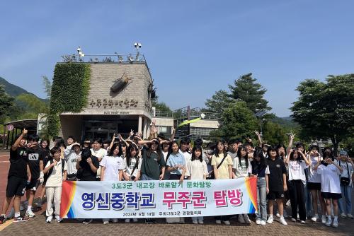 Áö³ 5ÀÏ ÁøÇàµÈ 1Â÷ Çà»ç ¶§´Â ¹«ÁÖÁßÇб³ 2Çгâ Çлý 97¸íÀÌ 2°³ Á¶·Î ³ª´µ¾î ¿µµ¿±º(¿ÍÀÎÅͳΠüÇè, °úÀϳª¶ó Å׸¶°ø¿ø ÇÇÀÚ ¸¸µé±â, ·¹Àκ¸¿ì ½Ä¹°¿ø °ßÇÐ)°ú ±Ý»ê±º(Çϴù°ºûÁ¤¿ø °ü¶÷, ±Ý»êÀλï¹Ú¹°°ü °ü¶÷, ¸ñÀç¹®ÈüÇèÀå ¹®ÆÐ¸¸µé±â üÇè)À» ¹æ¹®ÇÑ ¹Ù ÀÖ´Ù.