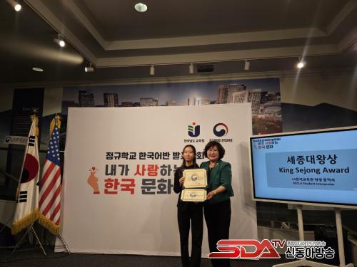 À̳¯ ¹ßÇ¥´ëȸ¿¡¼ 1µî»ó¿¡ ÇØ´çÇÏ´Â Çѱ۴ë»óÀº New Covenant AcademyÀÇ Suejung Park Çлý(11Çгâ)¿¡°Ô, 2µî ¼¼Á¾´ë¿Õ»óÀº Areil Nonato (Glen A. Wilson HS, 11Çгâ), Erin Lee (Herbert Hoover HS, 10Çгâ), Eunice Choi (North Hollywood HS, 11Çгâ), Inji Jeong (Crescenta Valley HS, 11Çгâ), Nayeon Kim(Granada Hills Chater HS, 11Çгâ)¿¡°Ô µ¹¾Æ°¡´Â µî ÃÑ 15¸íÀÇ ÇлýµéÀÌ ¼ö»óÀÇ ¿µ¿¹¸¦ ¾È¾Ò´Ù.
