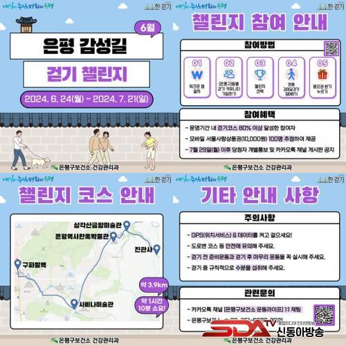 ¡®ÀºÆò °¨¼º±æ °È±â 縰Áö¡¯´Â ¡®2023 ¿ì¸® µ¿³× µ¿º° °È±â ÄÚ½º °ø¸ðÀü¡¯À» ÅëÇØ ¼±Á¤µÈ ÄÚ½º¸¦ ¹Ý¿µÇß´Ù. °È±â ÄÚ½º´Â ÃѰŸ® 3.9km·Î ±¸ÆÄ¹ß¿ª, »çºñ³ª¹Ì¼ú°ü, ÀºÆò¿ª»çÇÑ¿Á¹Ú¹°°ü, »ï°¢»ê±Ý¾Ï¹Ì¼ú°ü, Áø°ü»ç·Î À̾îÁö¸ç ¾à 1½Ã°£ 10ºÐÀÌ ¼Ò¿äµÈ´Ù.