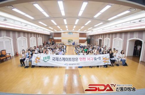 ¾Æ¿ï·¯, À̳¯ ±¹Á¦½ºÄÉÀÌÆ®Àå À¯Ä¡¸¦ Áö¿øÇÏ´Â ³»¿ëÀ» È«º¸ÇÏ°í ºÕÀ» Á¶¼ºÇϱâ À§ÇØ ±³À°¿¡ Âü¼®ÇÑ Á¾»çÀÚµéÀÌ ¼±¸¹ÎÀÇ ¶æÀ» ´ã¾Æ ±¸È£¸¦ ÇÔ²² ÈûÂ÷°Ô ¿ÜÃÆ´Ù.