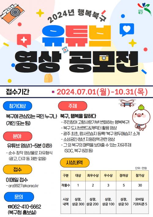 ÇູºÏ±¸ À¯Æ©ºê ¿µ»ó °ø¸ðÀüÀº ÀϹÝÀεéÀÇ ÅåÅå Æ¢´Â ¾ÆÀ̵ð¾î·Î Á¦ÀÛµÈ À¯Æ©ºê ¿µ»óÀ» ÅëÇØ Áö¿ª ¿ì¼öÁ¤Ã¥․ÀÚ¿øÀ» È¿°úÀûÀ¸·Î ¾Ë¸®°í ºÏ±¸¿¡ ´ëÇÑ Àü±¹ÀûÀÎ °ü½ÉÀ» À¯µµÇϰíÀÚ ¸¶·ÃµÆ´Ù.
