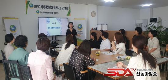 ¸ðÀÓ¿¡´Â ¼ÕÂ÷¿µ ¡®¼ÕÂ÷¿µ °¶·¯¸®¡¯ ´ëÇ¥¿Í ÆòÈ È¸¿ø 20¿© ¸íÀÌ Âü¼®Çß´Ù. À̵éÀº ÇÃ·çÆ® °ø¿¬À» ÇÔ²² °¨»óÇϰí IWPGÀÇ ÆòÈ È°µ¿ ¿µ»óÀ» ½ÃûÇß´Ù. ÀÌÈÄ ¡®ÇູÇÑ ¿©ÀÚ´Â ¾Æ¸§´ä´Ù¡®¶ó´Â ÁÖÁ¦·Î Çູ °ø°¨ ÅäÅ© ÄܼƮ¸¦ ÁøÇàÇß´Ù.