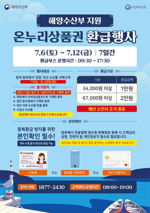 Çà»ç ±â°£ ºÏºÎ½ÃÀå°ú ÀÍ»êÀå ³» 21°³ ´ë»ó Á¡Æ÷¿¡¼ ±¹³»»ê ¼ö»ê¹°À» ±¸ÀÔÇϰí, ±¸¸Å±Ý¾×¿¡ µû¶ó 1ÀÎ ÃÖ´ë 2¸¸ ¿øÀÇ ¿Â´©¸®»óǰ±ÇÀ» ȯ±Þ¹ÞÀ» ¼ö ÀÖ´Ù.