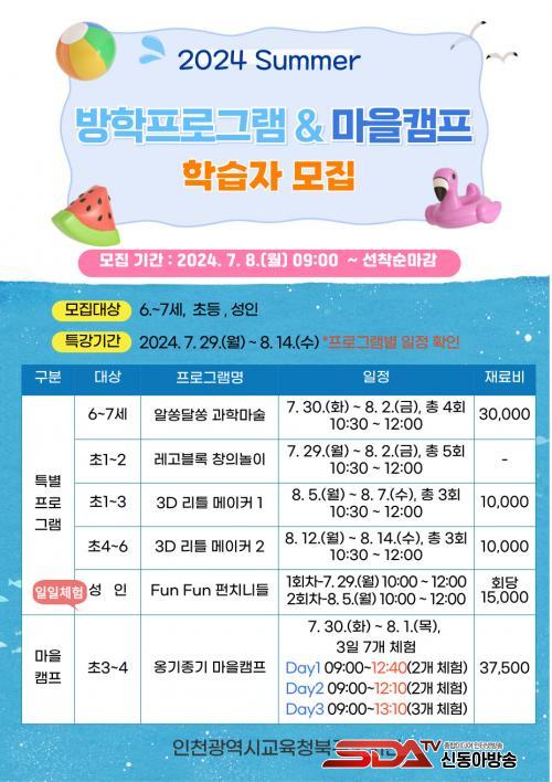 ¿©¸§¹æÇРƯº°ÇÁ·Î±×·¥Àº ¢ºÀ¯¾Æ(6~7¼¼) ´ë»ó ¡®¾Ë½ö´Þ½ö °úÇÐ ¸¶¼ú¡¯ ¢ºÃʵî 1~2Çг⠴ë»ó ¡®·¹°í ºí·Ï âÀÇ ³îÀÌ¡¯ ¢ºÃʵî 1~3Çгâ, 4~6Çг⠴ë»ó ¡®3D ¸®Æ² ¸ÞÀÌÄ¿¡¯ ¢º¼ºÀÎ ´ë»ó ¡®Fun Fun ÆÝÄ¡´Ïµé ÀÏÀÏ Ã¼Ç衯 µîÀ¸·Î ±¸¼ºÇß´Ù.